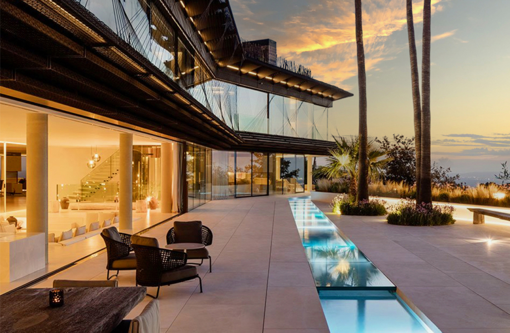 Die Wohnbereiche erstrecken sich über Erd- und Obergeschoss und umfassen sieben elegante Schlafzimmer sowie sechs luxuriöse Bäder. Auf der Dachterrasse laden ein Open-Air-Kino und ein Jacuzzi zum Entspannen und Genießen unter freiem Himmel ein.